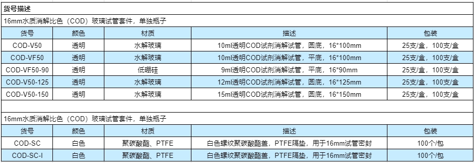爱吉仁COD试管采用硼硅酸盐玻璃制成,可以减少pH值变化和可能从钠钙玻璃中浸出的污染物。 由于体积小,重量轻等优点,无需其他实验室设备和技术人员即可进行测试。实验人员测试一个样品仅需3-5分钟,无需额外材料或仪器。可通用于市场上的水质分析仪器。