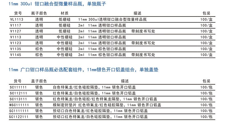 11mm钳口样品瓶,除了具有9mm具有的特点外,铝制钳口具有更好的密封效果,相对螺纹型瓶口,它在高温实验环境下更耐受高温,更能适应苛刻的实验条件。