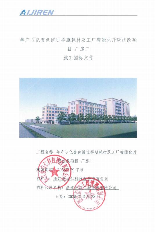 爱吉仁年产3亿套色谱进样瓶耗材及工厂智能化升级技改项目-厂房二施工招标 发布日期:2025-03-03 浏览次数: 873 爱吉仁年产3亿套色谱进样瓶耗材及工厂智能化升级技改项目厂房二施工招标附件:爱吉仁厂房二施工招标文件