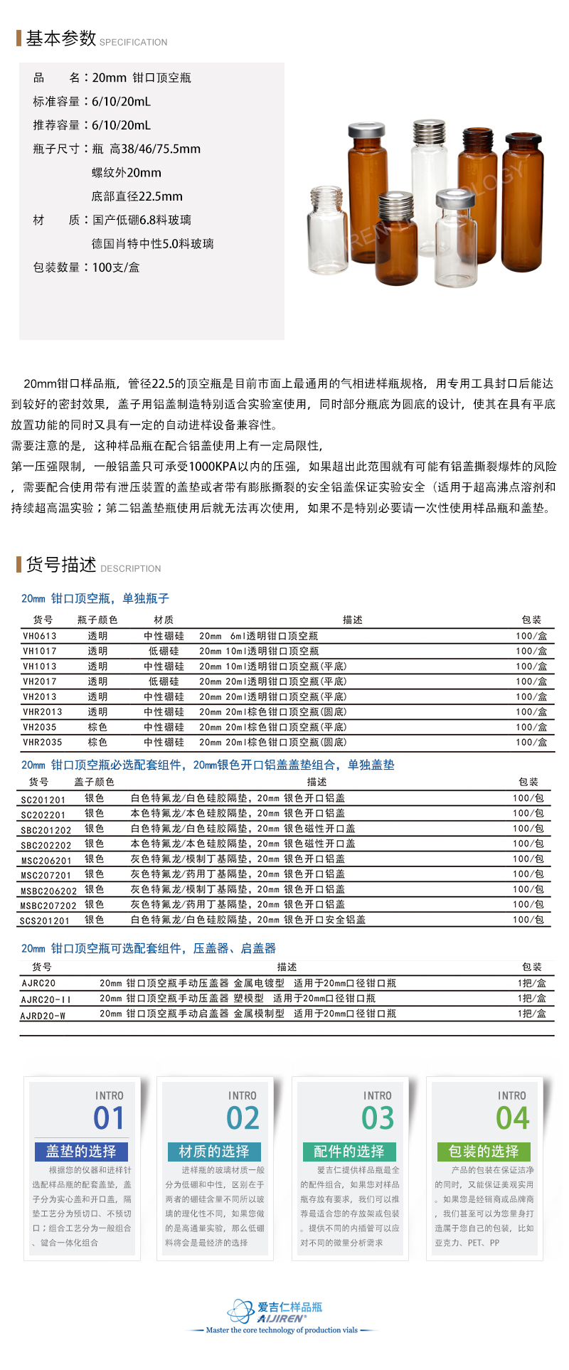 分 类:6-20mL 顶空钳口样品瓶 ND20