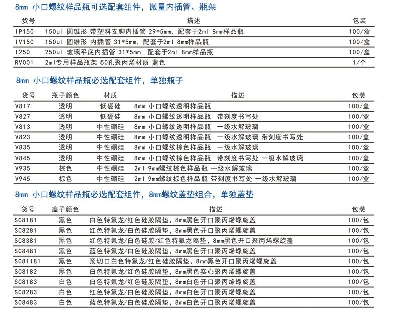 适用于样品稀少的进样检测实验,锥底内插管相对平底具有更低的残留,组合支架能对进样针起:“护为进样提高液位。